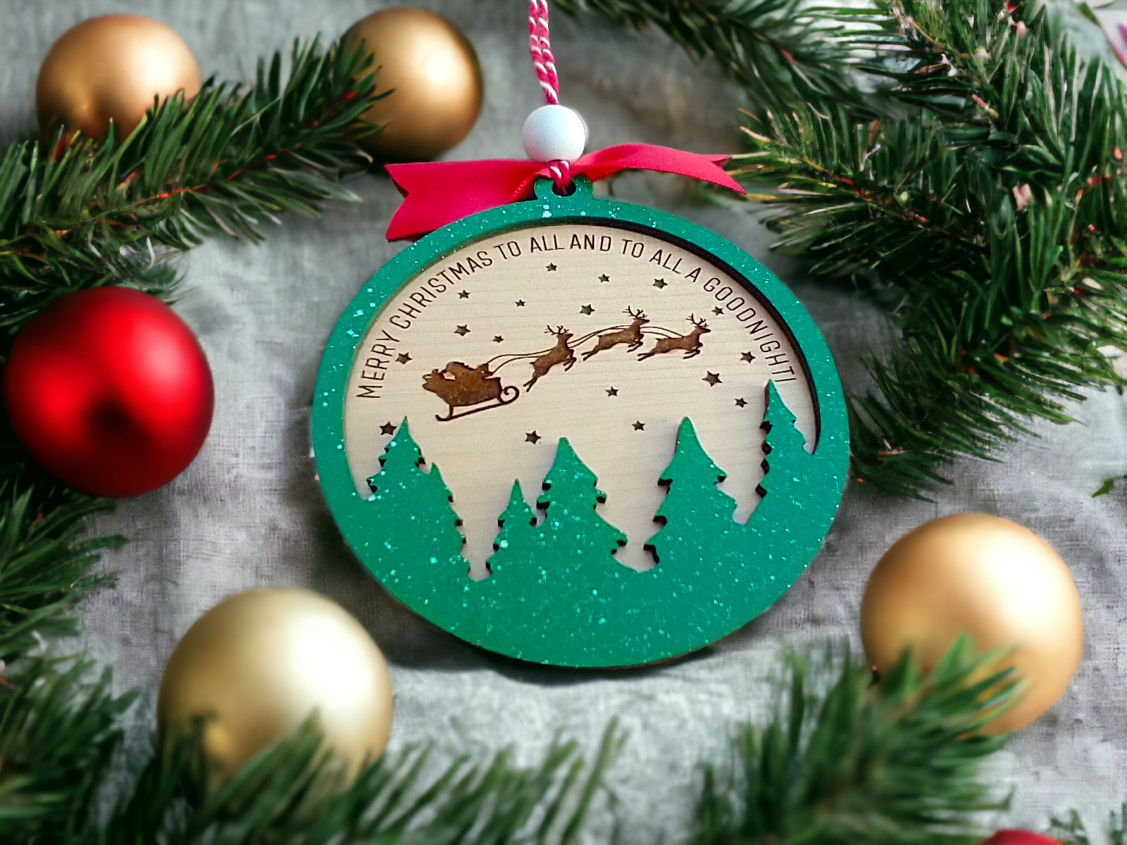 Merry Christmas To All And To All A Goodnight Christmas Wood Ornament | Santa Sleigh