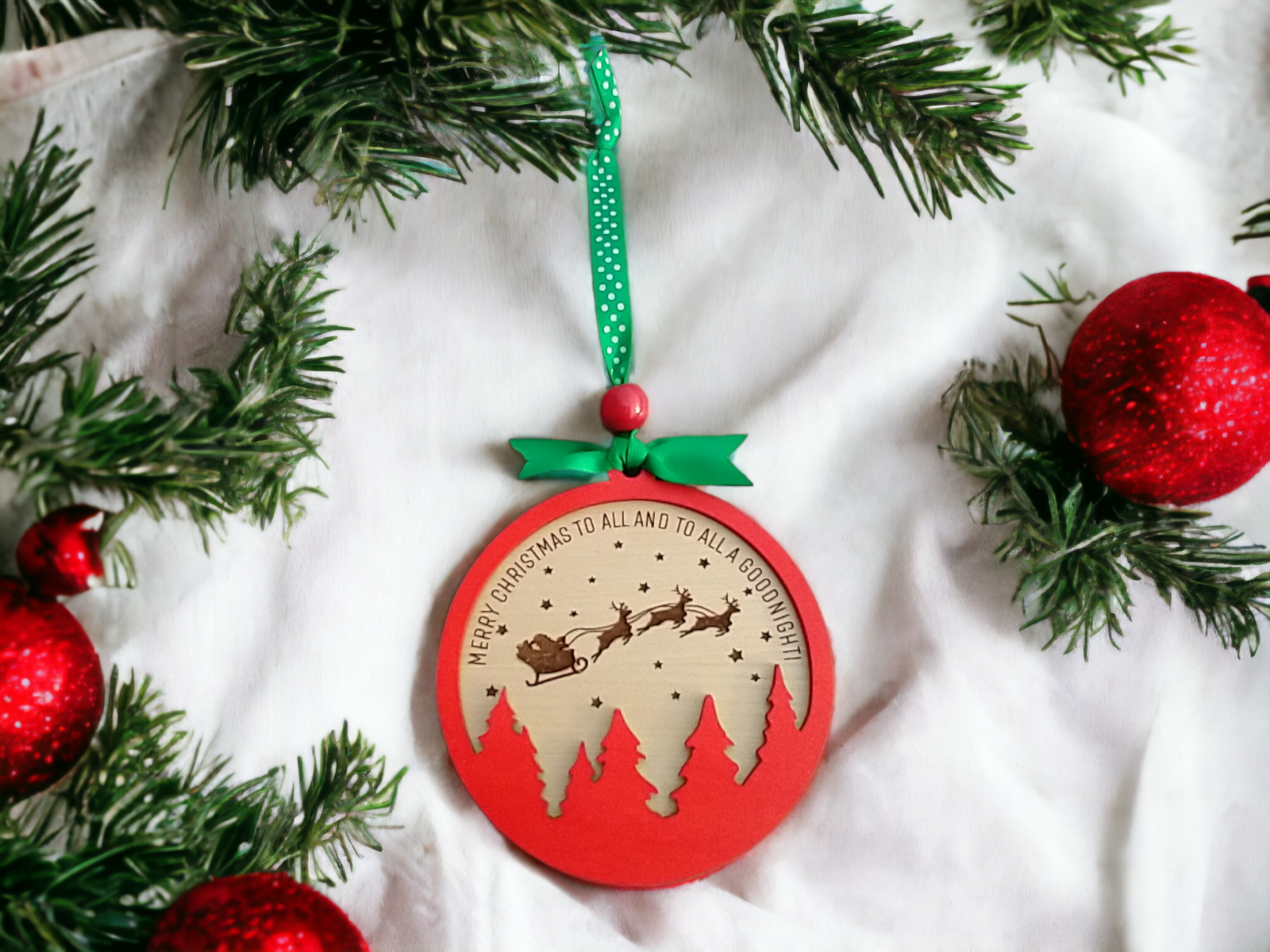 Merry Christmas To All And To All A Goodnight Christmas Wood Ornament | Santa Sleigh