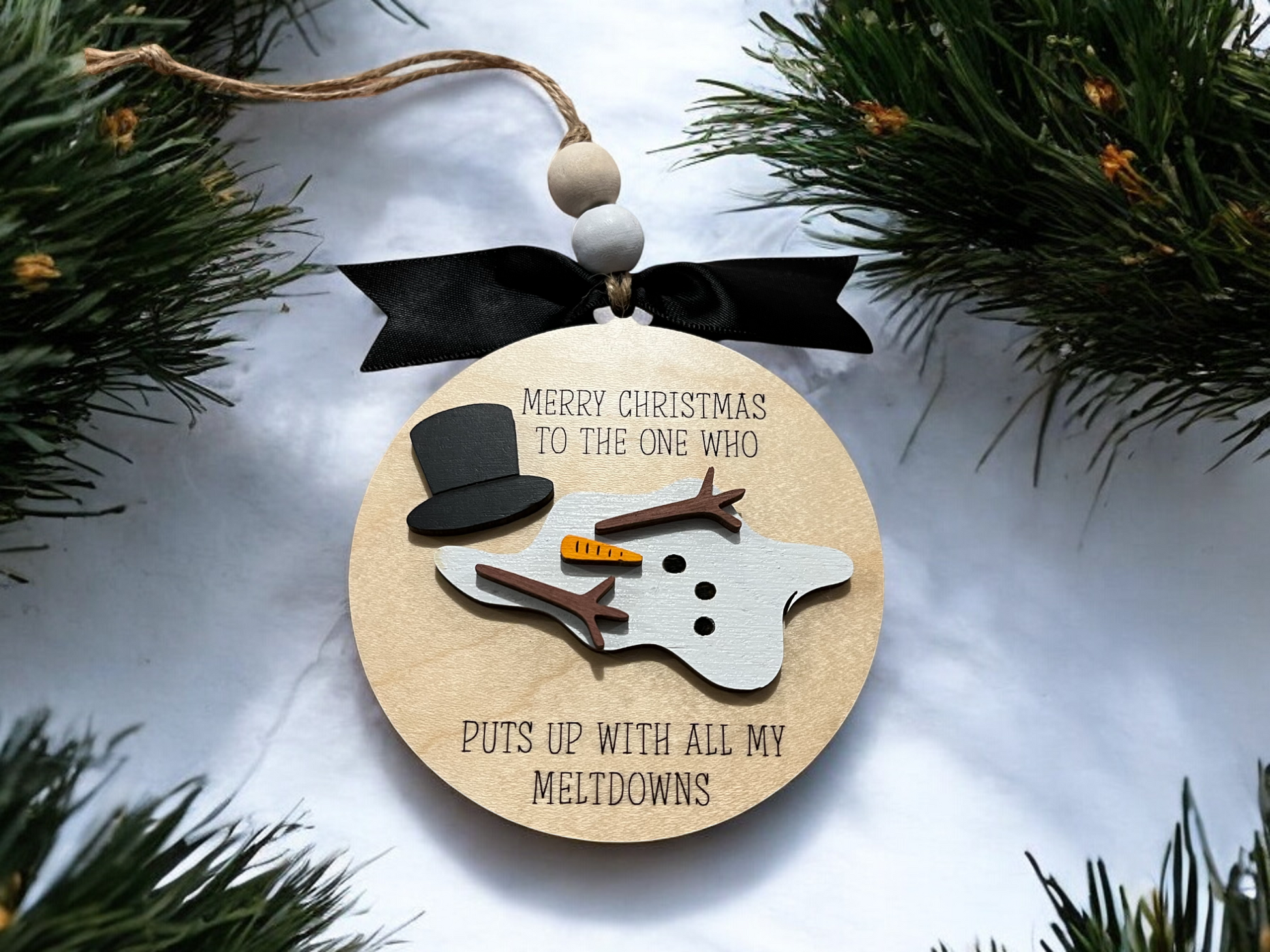 Merry Christmas to the one who puts up with all my meltdowns Ornament | Handmade Wood Ornament